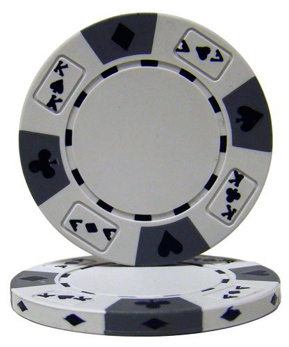 With a fine assortment of tri-tone colors, this exclusive chip line looks great too! Few chips on the market today can boast 3 colors and we are proud to offer these colorful and one-of-a-kind chips. With card suits decorating the outer rim of the chip in either black or white, and alternating Ace/King cards, these chips are available in your choice of 9 different color combinations (white, red, blue, green, black, orange, purple, pink, & yellow).