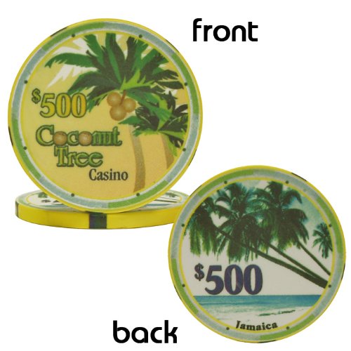 All chips feature a colorful illustration of the Coconut Tree Casino Logo with denominations. On the back side is an idyllic view of Jamaica. Available in 8 colors and denominations between and 00.