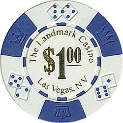 Landmark Casino Lucky Crown Design Chips are the latest edition to our vast Poker Chip Collection. These chips feature a custom hot stamp! You can choose from pre-stamped denominations from to 0. These chips are ready for play, right out of the box.With 3 crowns embedded in the edge spots along the chip's outer rim, these chips are available in your choice of 5 different denominations. Three combinations of dice are also embedded around the chip, adding to its decorative flair.These 39 mm diameter casino sized chips are 11.5 grams in weight. They are produced from a composite resin and an insert that gives them the weight feel of a heavy casino quality chip. The detail on these chips is flawless and their unique design makes them great for casinos and homestyle play alike. C Copyright 2004 All Rights ReservedThese poker chips are copyright protected and registered with the U.S. Copyright office and are only available through us the manufacturer or our authorized dealers. It is unlawful for any of our competitors to sell a copy of this chip's style or characteristics. Therefore, this chip will not be widely available in any form except through our warehouse. These valuable chips are rare and will maintain or increase in value throughout the years.